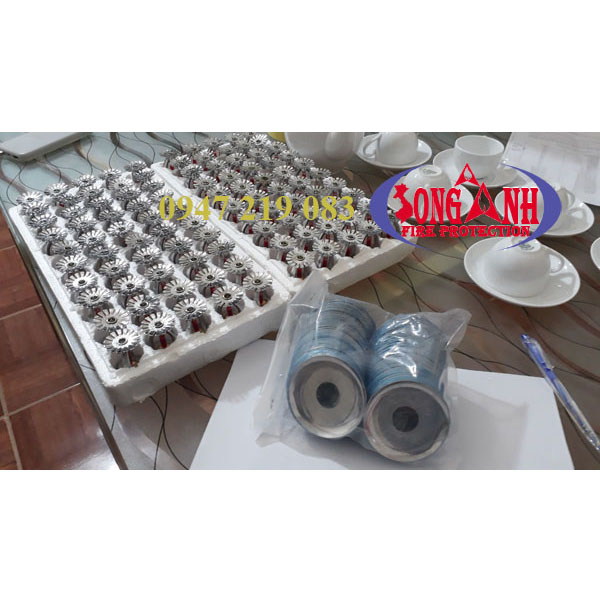 • Cảm ứng nhiệt: Là thành phần kiểm soát nhiệt độ để phun nước. Ở nhiệt độ bình thường, bộ cảm ứng sẽ giữ nút chặn lại làm kín nước, khi nhiệt độ cao đạt đến ngưỡng hoạt động, bộ cảm ứng sẽ giải phóng làm rơi nút chặn & phun nước ra ngoài.